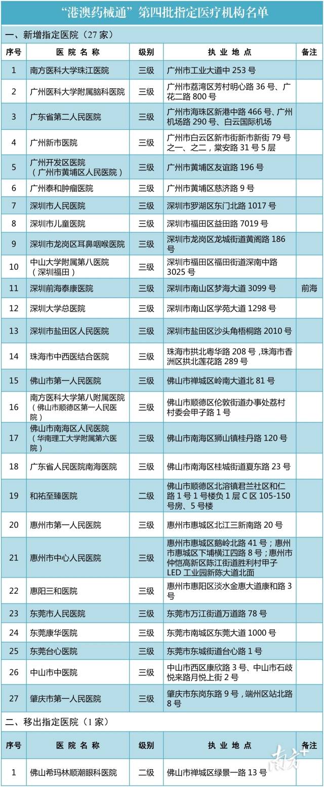 12月8日,粤港澳大湾区医疗融合迎来新进展。广东省卫生健康委员会与足彩网官网 联合发布通知,正式公布“港澳药械通”第四批指定医疗机构名单。本次新增27家医疗机构,同时有1家机构被移出名单。