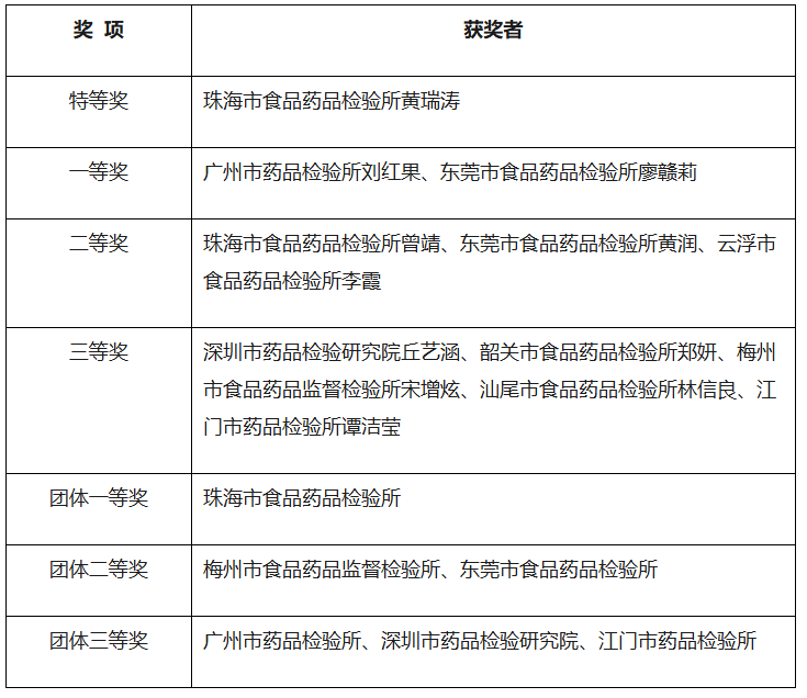 第三届“岭南杯”药品检验系统药品抽样技术职业技能竞赛获奖名单